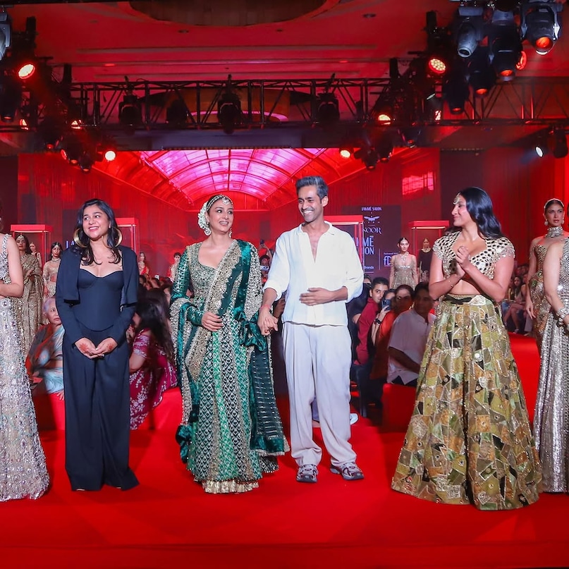 इस मौके पर तब्बू फैशन लेबल Itrh के ‘नूर’ कलेक्शन के लिए शोस्टॉपर बनीं. उन्होंने गहरे हरे रंग की अनारकली पहनी थी, जिसमें वह किसी महारानी से कम नहीं लग रही थीं. यह अनारकली ट्रेडिशनल होते हुए भी मॉडर्न टच लिए हुए थी. उनके चेहरे की चमक, गहनों की नजाकत और ड्रेस की बारीक डिटेलिंग — सब कुछ मिलकर तब्बू को और भी ग्लैमरस बना रहा था.