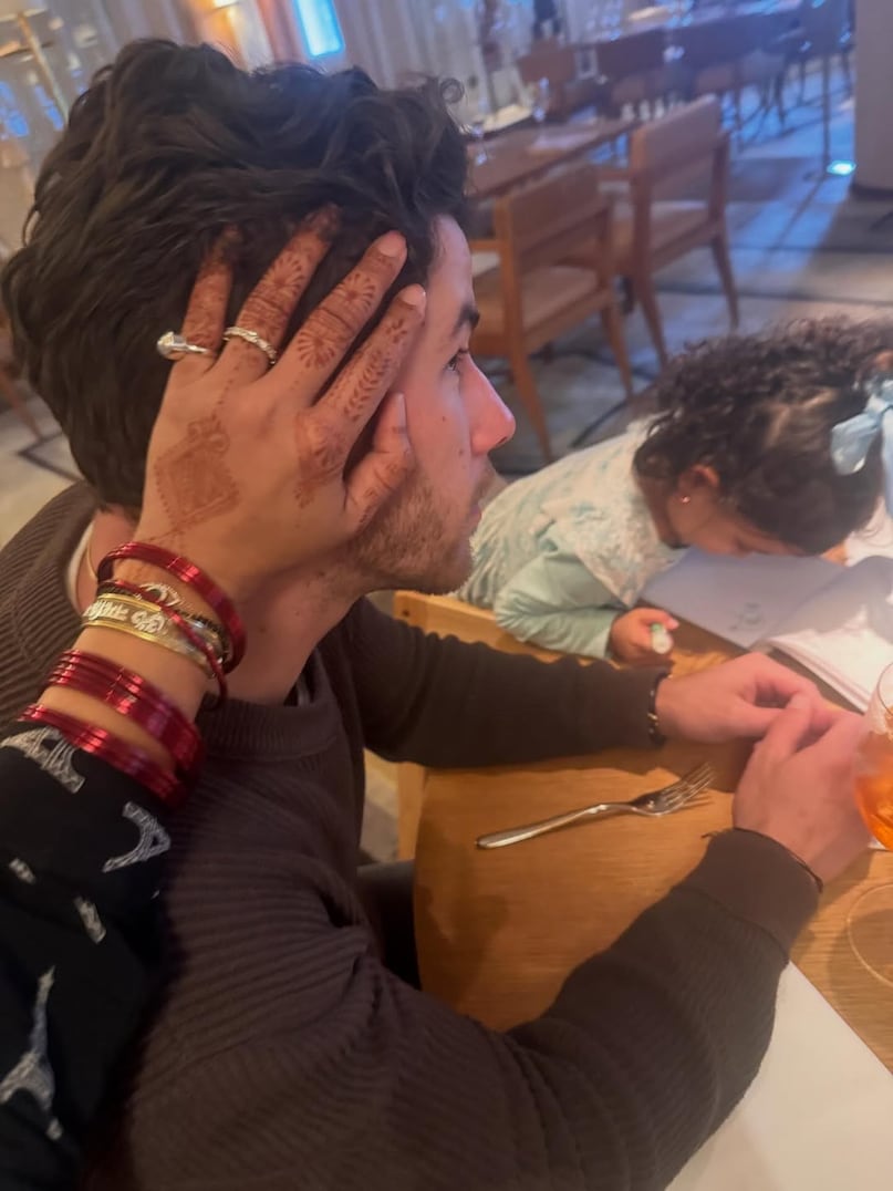 प्रियंका चोपड़ा ने निक के साथ अपनी फोटो शेयर करते हुए कैप्शन में लिखा, ‘सरप्राइज!! डैडी वापस आ गए! टूरिंग के बीच में, जब वह हर साल करवा चौथ मनाने के लिए घर वापस आते हैं, जब मेरी सास मुझे एक दिन पहले मेरी सरगी भेजती हैं, और मेरी मां विकास खन्ना द्वारा बनाए गए स्वादिष्ट भोजन को वापस लाती हैं ताकि मैं अपना व्रत तोड़ सकूं.. यही मेरे सपनों की दुनिया है. धन्यवाद मेरे सच्चे चांद बनने के लिए निक जोनास’. (फोटो साभार इंस्टाग्राम)